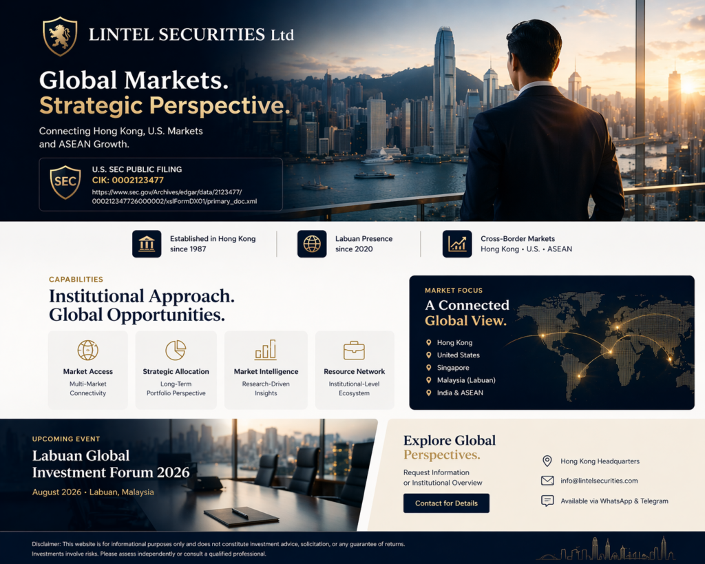 Positioned between Hong Kong, U.S. capital markets, and ASEAN growth corridors, LINTEL SECURITIES Ltd presents a more international perspective on market access, strategic allocation, and long-term financial positioning.